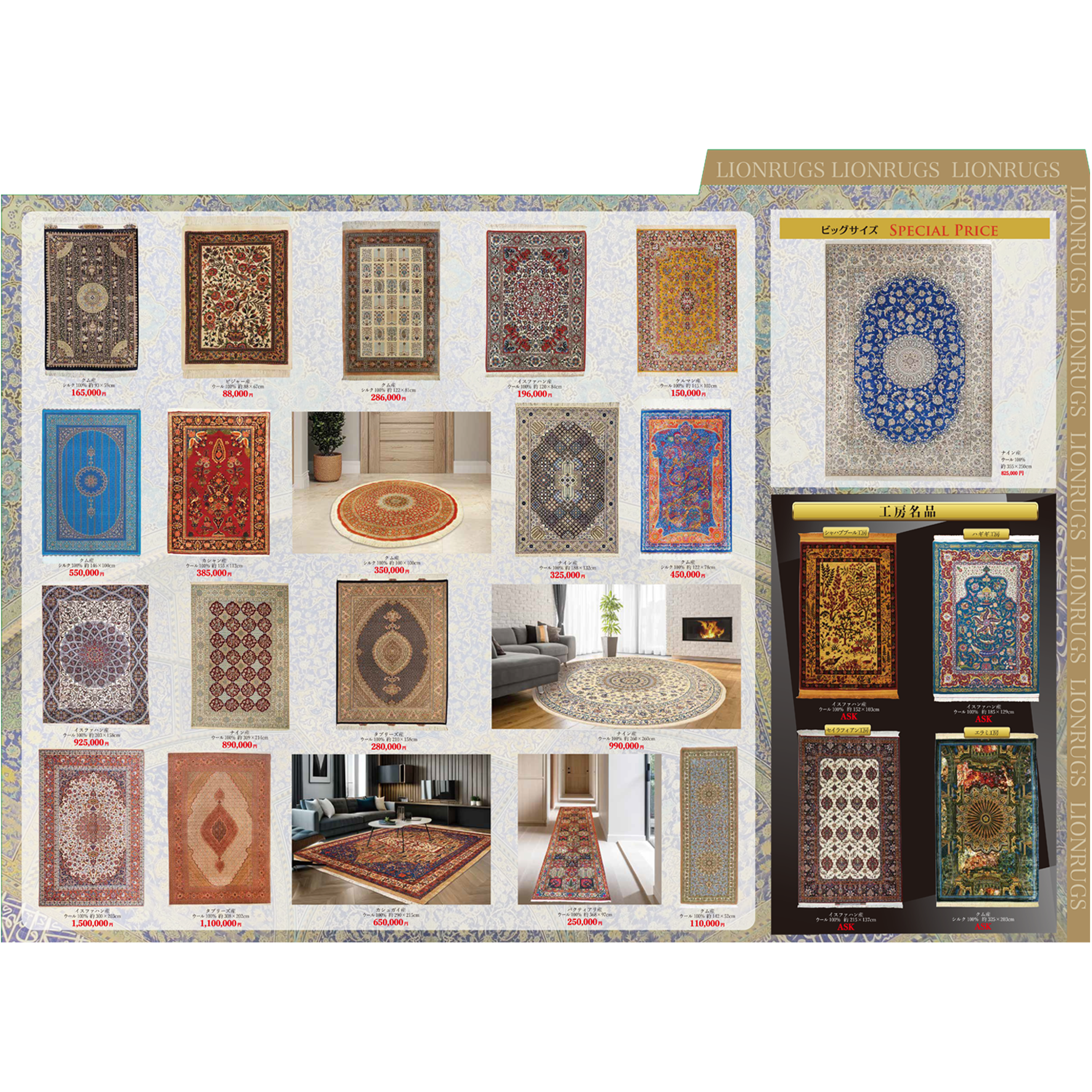 弊社現地スタッフ厳選の絨毯等見ごたえあるラインナップとなっております。